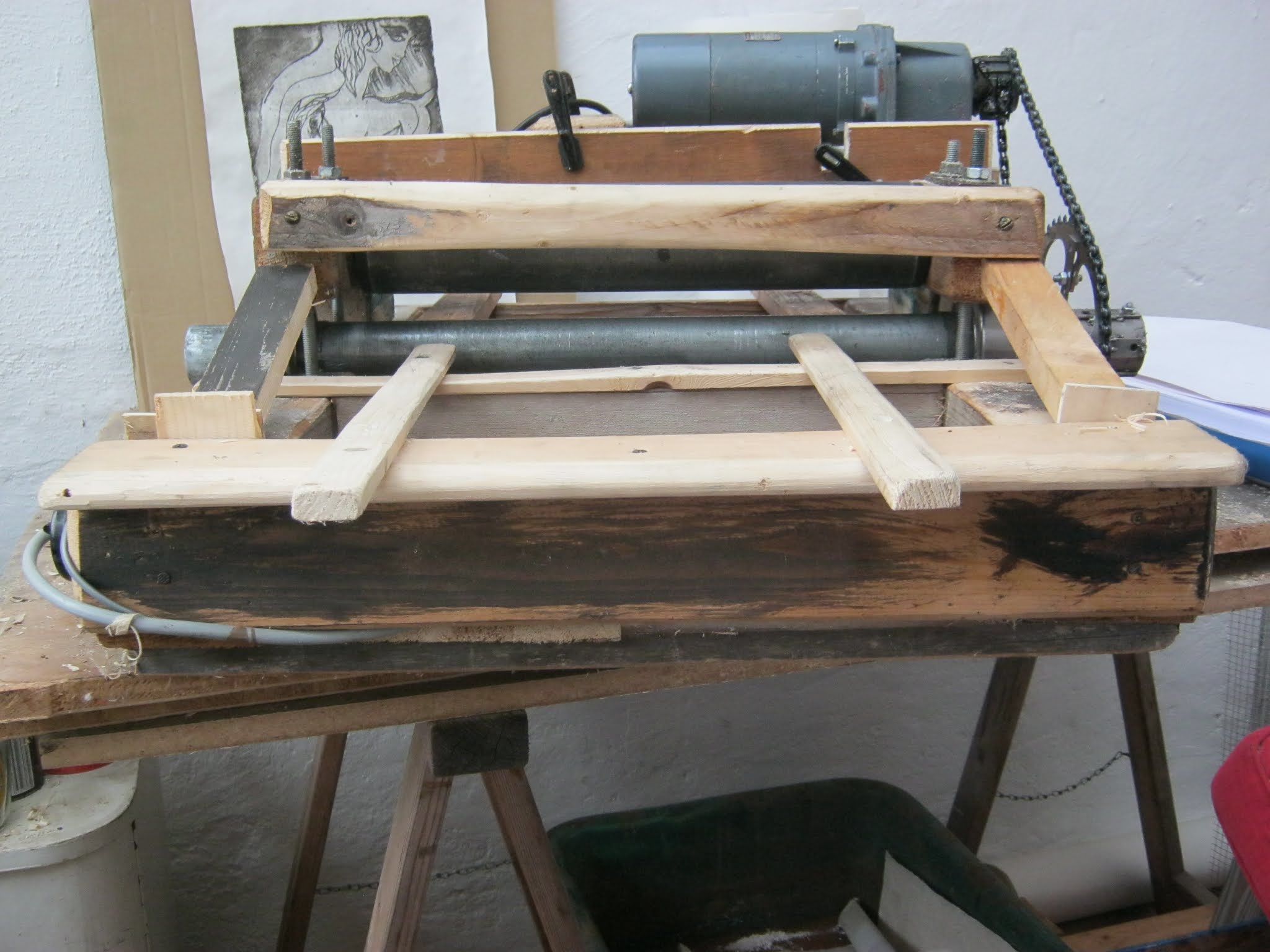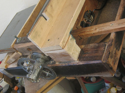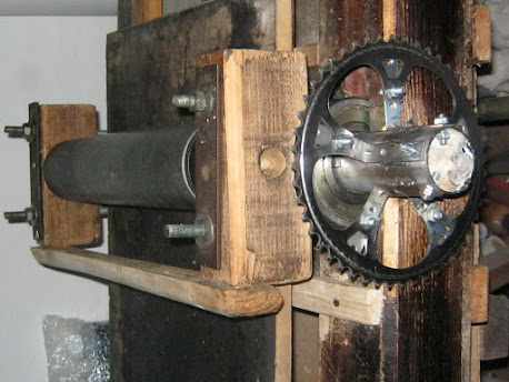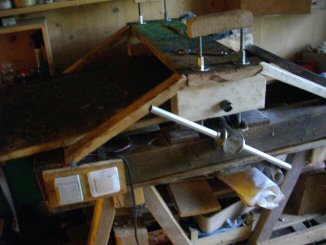 I used only recycled material. Wood some srew-rods and a rotton ceiling ventilator.